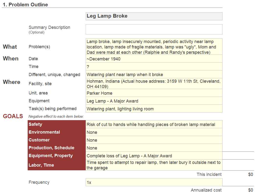 While we’ll never know for sure whether Mrs. Parker broke the leg lamp on purpose, we can use Cause Mapping® root cause analysis to examine the situation. I’ll explore why the leg lamp was ruined and how the family can reduce the risk of similar incidents in the future.